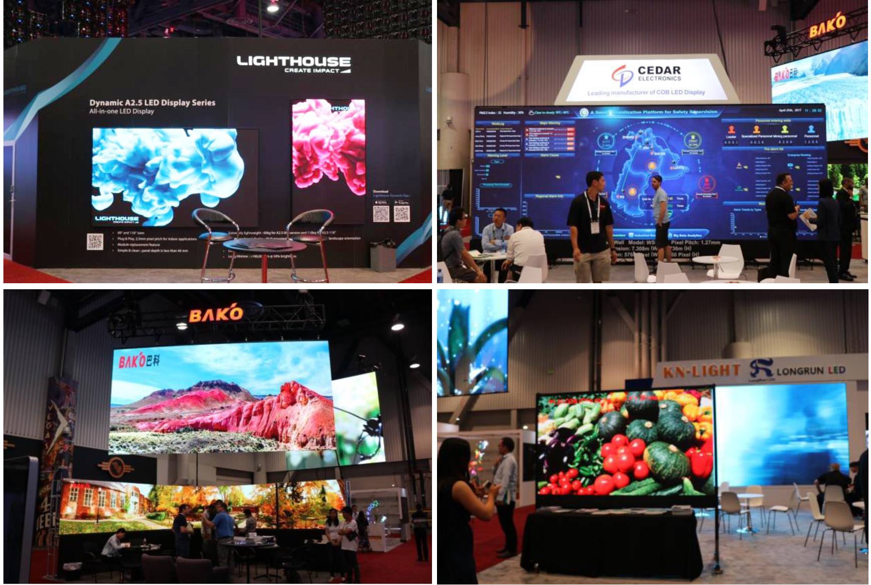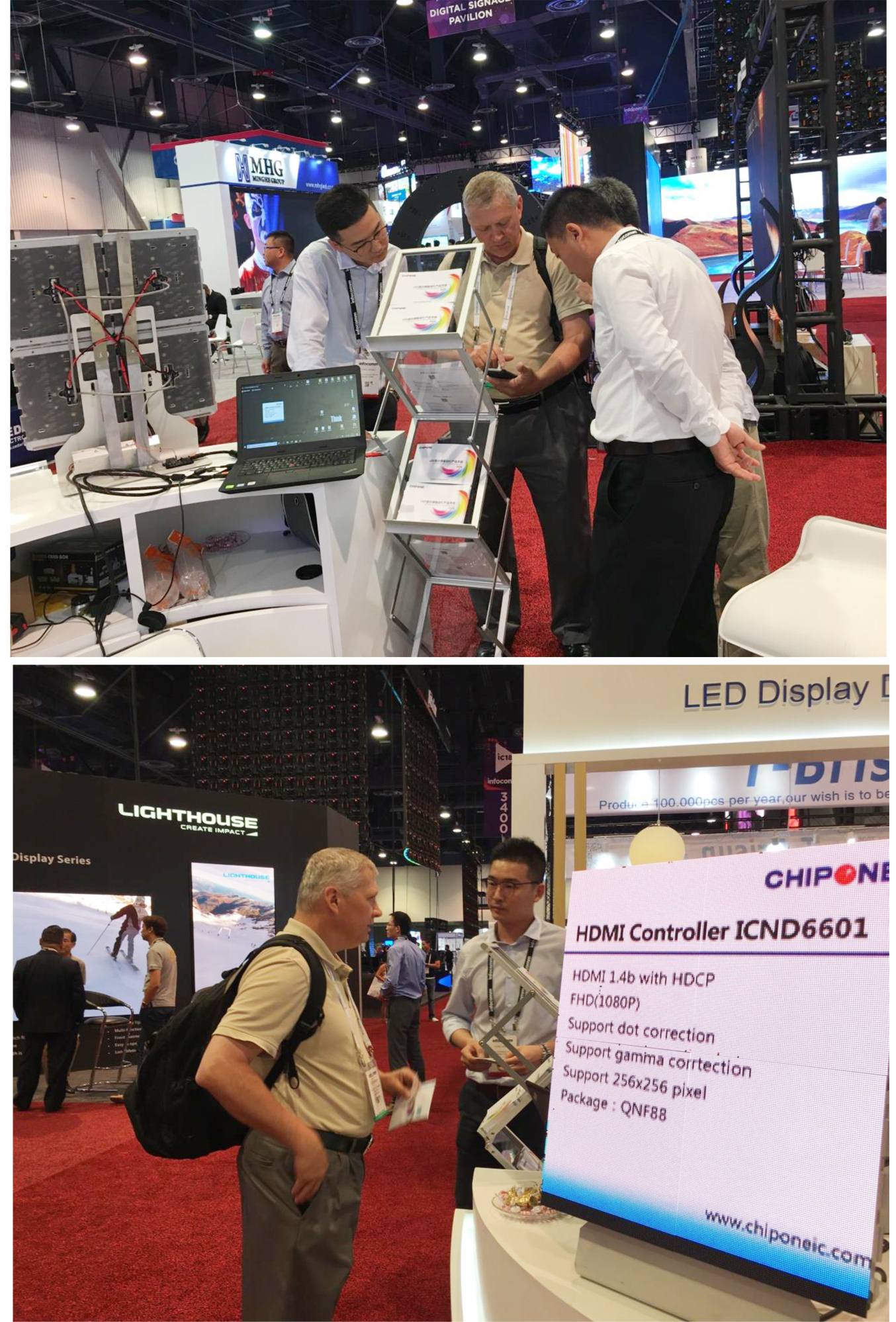 6月6日-8日,為期三天的視聽顯示技術(shù)與系統(tǒng)集成展會InfoComm在美國拉斯維加斯會展中心(LAS VEGAS CONVENTION CENTER)開幕。該展會由美國國際信息交流行業(yè)協(xié)會舉辦,在專業(yè)視聽、電子系統(tǒng)集成、燈光音響、智能建筑領(lǐng)域享譽全球,聚集了全球頂級的視聽技術(shù)、解決方案,為視聽廠商和專業(yè)用戶提供了寶貴的交流平臺。 集創(chuàng)北方攜多款行業(yè)領(lǐng)先產(chǎn)品首次亮相InfoComm USA展,展示了在LED顯示領(lǐng)域高智能、高集成、高品質(zhì)的創(chuàng)新成果。此次展會上受到極大關(guān)注的L+產(chǎn)品系列,通過采用新協(xié)議、新架構(gòu)以及更高的集成度,實現(xiàn)了雙線串行+行列合一+小封裝體的形式,能夠降低客戶端的綜合成本,通過智能化的控制以及統(tǒng)一的信號協(xié)議,進一步帶來設(shè)計流程上的簡化。其產(chǎn)品特征主要包括:簡化電路結(jié)構(gòu)、降低PCB成本;統(tǒng)一信號協(xié)議,控制簡便;高集成架構(gòu),更好顯示效果;智能化控制,減少調(diào)試等等。 其中,ICND2200驅(qū)動IC是第一次點亮展出,專為超小間距LED顯示屏設(shè)計,具有創(chuàng)新的行列合一整合架構(gòu),雙線串行數(shù)據(jù)傳輸方式,單顆IC控制16x8像素,兩顆級聯(lián)控制32x16像素。ICND2200以0.95間距及PCB 僅6層的特點吸引了很多客戶駐足拍照,顯示效果較為突出。