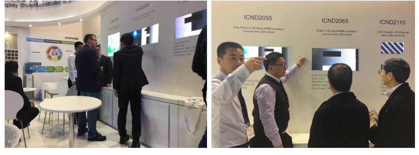 此次展會(huì)受到極大關(guān)注的有ICND2055、ICND2065,這是兩款代表了高性能小間距發(fā)展方向的PWM產(chǎn)品,體現(xiàn)了高度的智能化特性。ICND2055內(nèi)置智能gamma轉(zhuǎn)換,可調(diào)整gamma值,可進(jìn)行智能動(dòng)態(tài)節(jié)能,并在降EMI方面表現(xiàn)優(yōu)異。此外,在刷新率與灰度等級(jí)、一致性與消隱、顯示與拍攝效果方面表現(xiàn)出色。