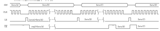 ? data(B)傳送完成后,由LE產(chǎn)生latch信號(hào),鎖存data(B),并接著傳送data(C)