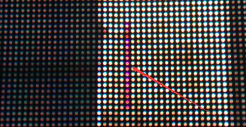 上鬼影是系統(tǒng)在不同的時(shí)間,分別驅(qū)動(dòng)掃描行線,在關(guān)斷上一行線并驅(qū)動(dòng)下一行時(shí),上一行電路中殘留的電量無處釋放,只通過LED發(fā)光的形式釋放產(chǎn)生的暗亮的現(xiàn)象。而毛毛蟲現(xiàn)象則是掃描屏中的LED燈質(zhì)量有漏電或有短路的情況下,燈管被擊穿,使得該燈管所在列的其它燈始終處于高亮顯示狀態(tài)。普通增加電阻的方法只能讓兩種現(xiàn)象此消彼長,無法徹底解決,更因?yàn)辄c(diǎn)間距越小的屏體就擁有單位面積上更多的燈管數(shù)量,成倍放大了對LED顯示屏畫面質(zhì)量的困擾。